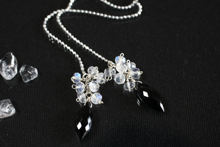 “フェルドスパー”(長石)類のいく種類かが層状に重なって形成されていて、この構造が光を特殊な形で分散、反射させることで独特の青色から白色の光を放っています。特に青色の光を放つものを「ブルームーンストーン」と呼んでいます。